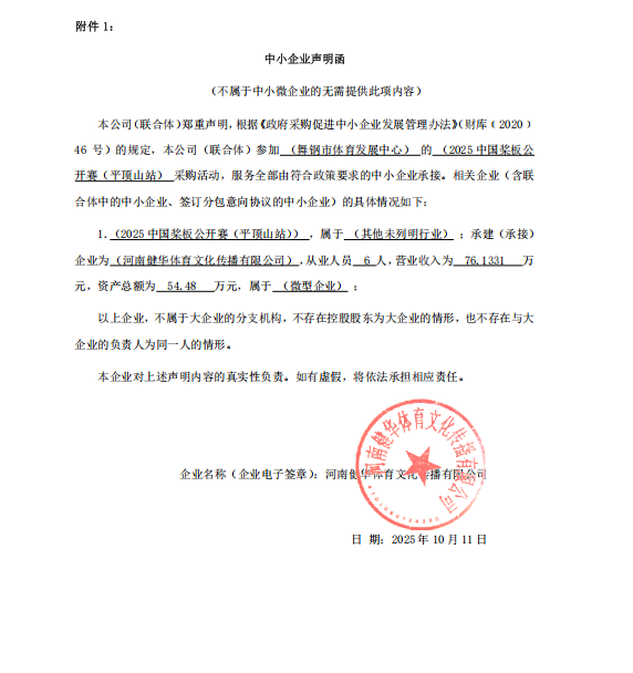 1 2025中国桨板公开赛(平顶山站) 详见采购文件 详见采购文件 自合同签订之日起至赛事及全部善后工作结束 保障赛事圆满完成,满足采购人工作要求