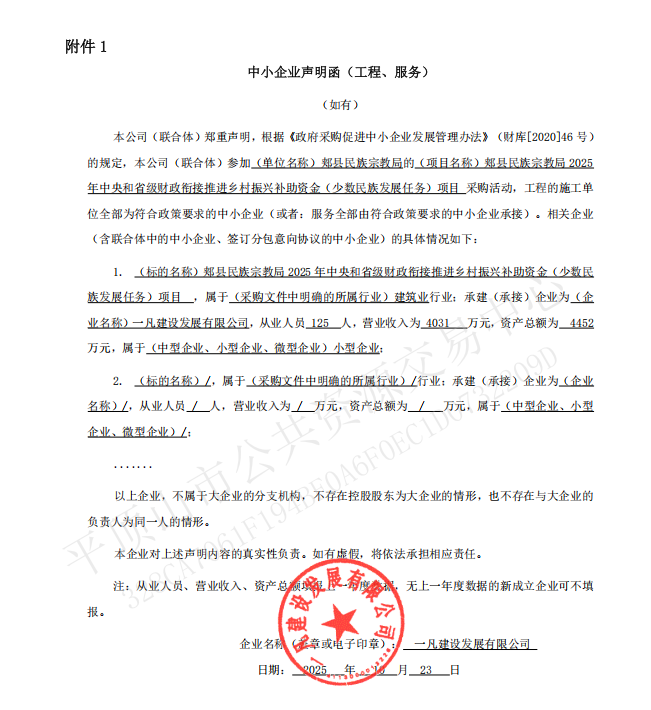 1 郏县民族宗教局2025年中央和省级财政衔接推进乡村振兴补助资金(少数民族发展任务)项目 45日历天 马勇 ******8600